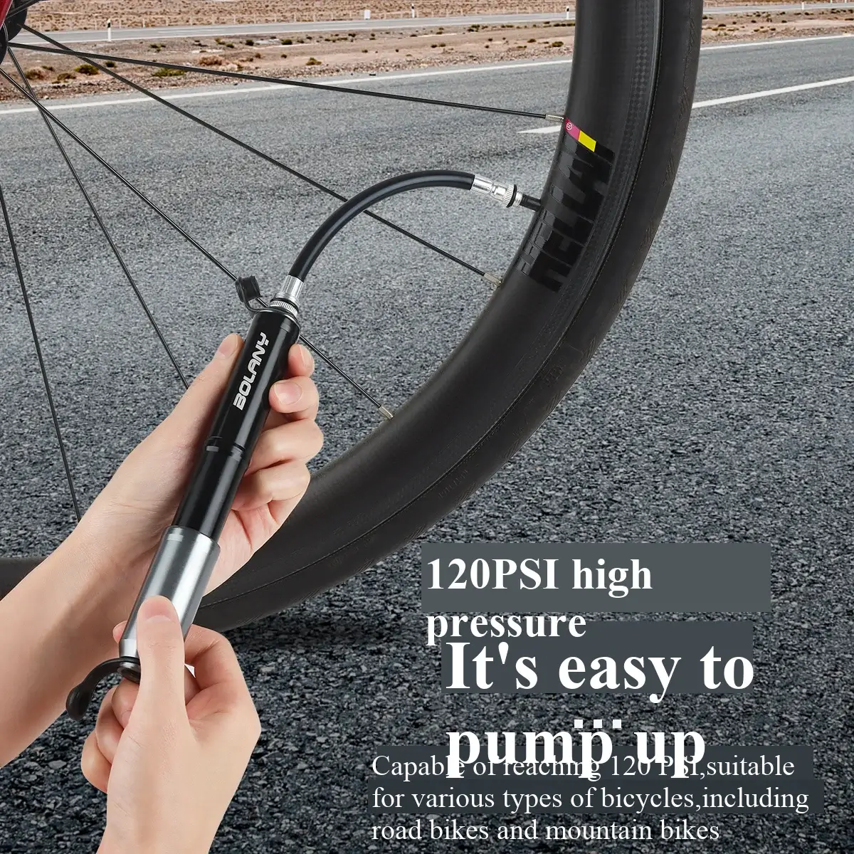 • 120 PSI High Pressure: Ideal for road and mountain bike tires.